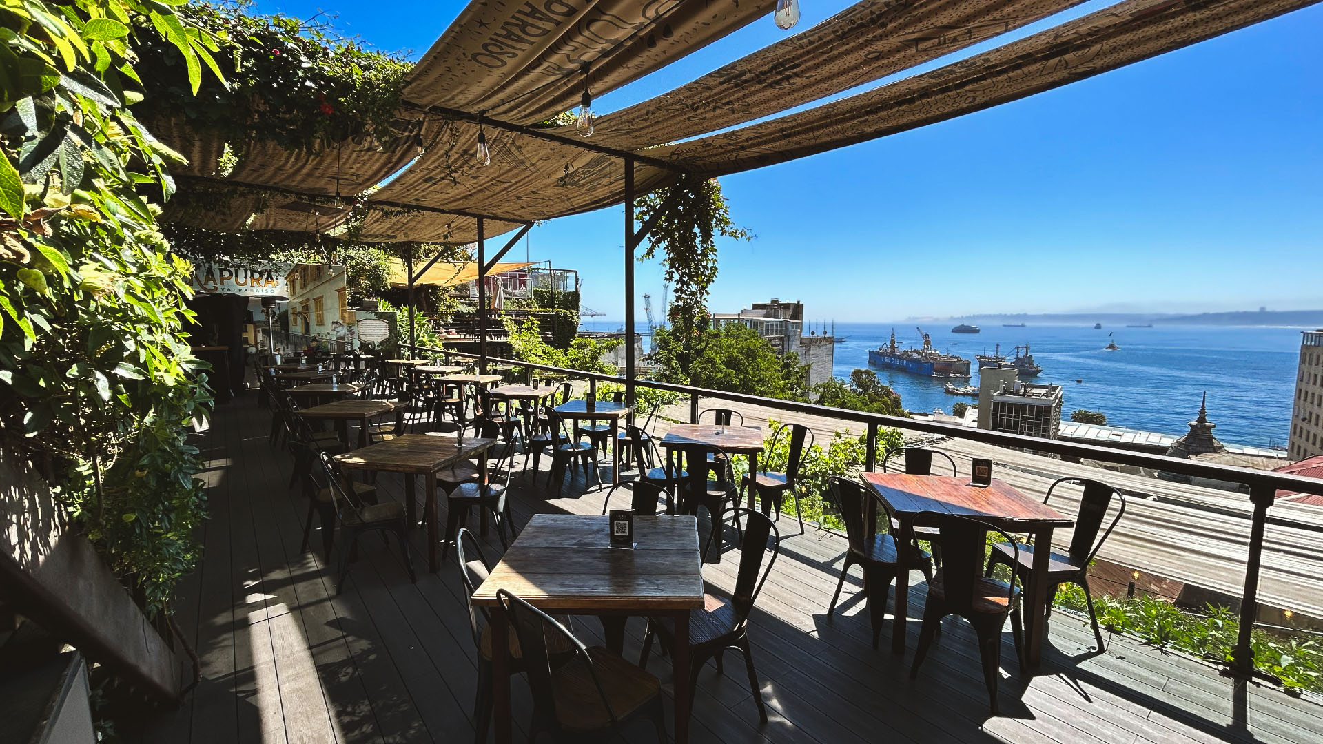 Imagina una cálida tarde, en una terraza con vista al Pacífico y al puerto, en la lejanía se asoman dunas, tan perfectas que parecen un efecto reflejo, todo tan porteño que hasta te sientes en el viejo puerto. En la mesa, un rico sanguchito hecho con productos frescos y nacionales, al lado de una cerveza artesanal de la región, y te preguntas ¿qué más podría pedir?